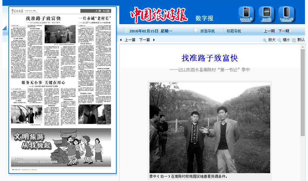 中国旅游报:找准路子致富快——记第一书记季中