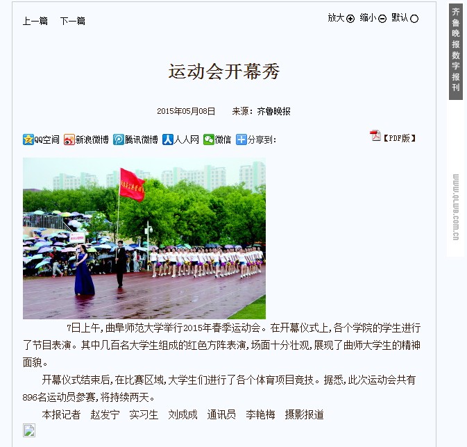 齐鲁晚报:华体会官方网页版_华体会(中国)日照校区举办运动会 各院“院花”举牌比美