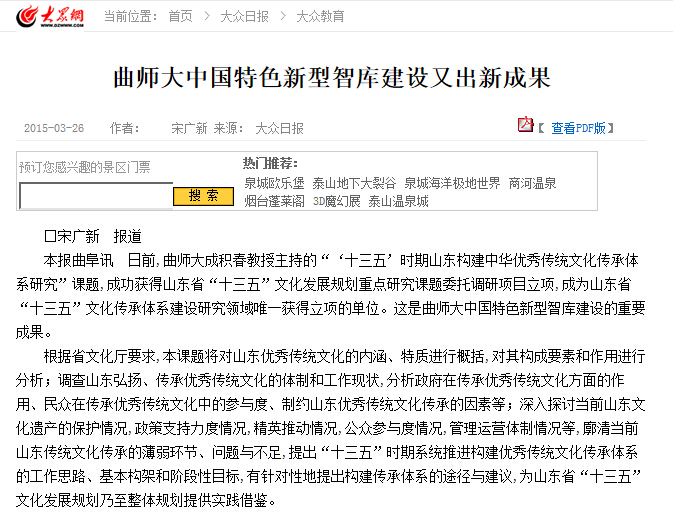 大众日报:曲师大中国特色新型智库建设又出新成果