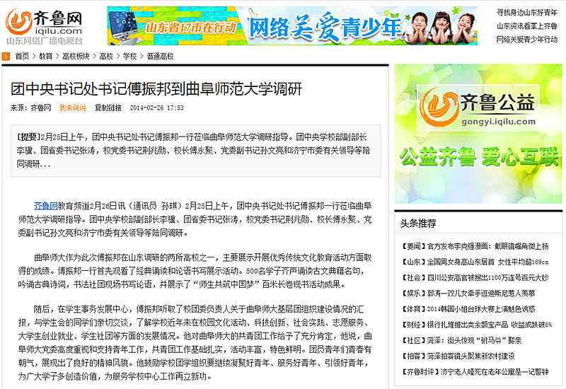 齐鲁网:团中央书记处书记傅振邦到华体会官方网页版_华体会(中国)调研