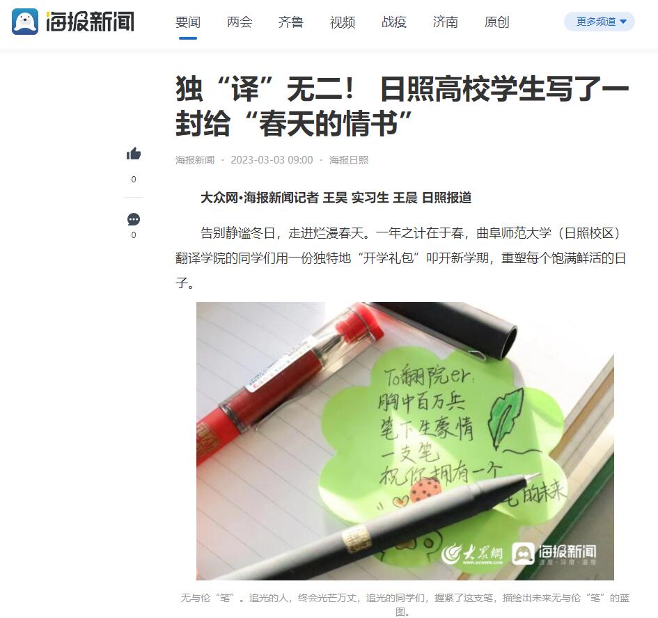 独“译”无二!曲阜师大学生写了一封给“春天的情书”
