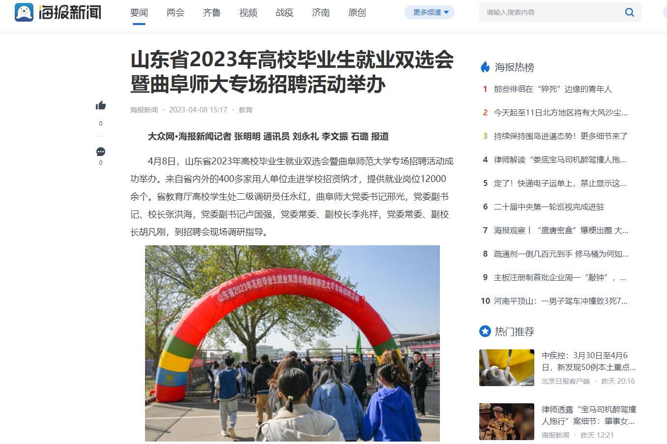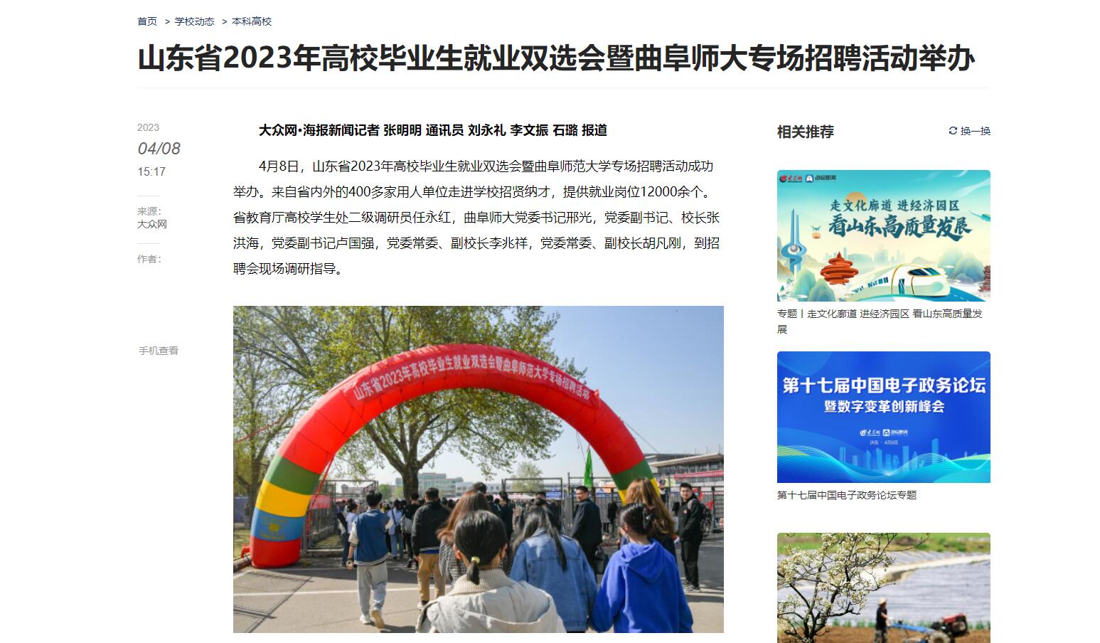 【大众网海报新闻】山东省2023年高校毕业生就业双选会暨曲阜师大专场招聘活动举办