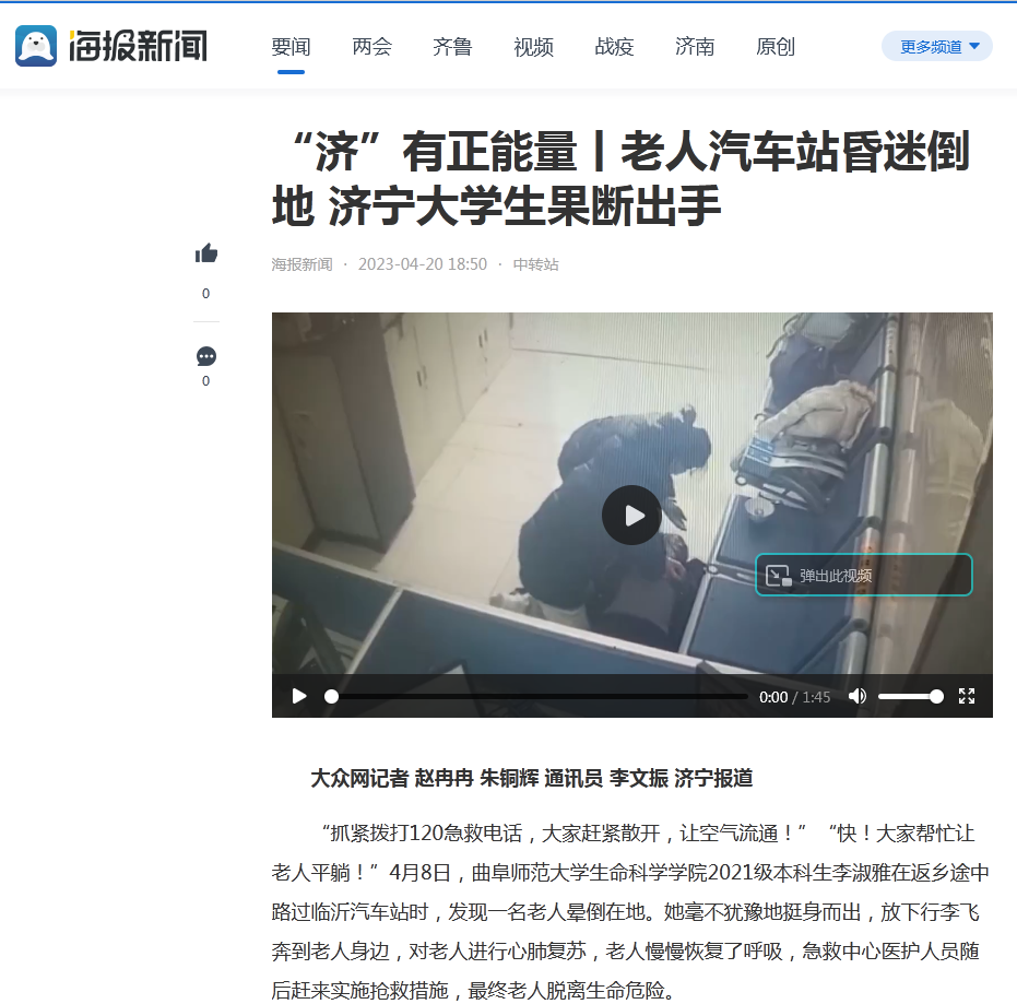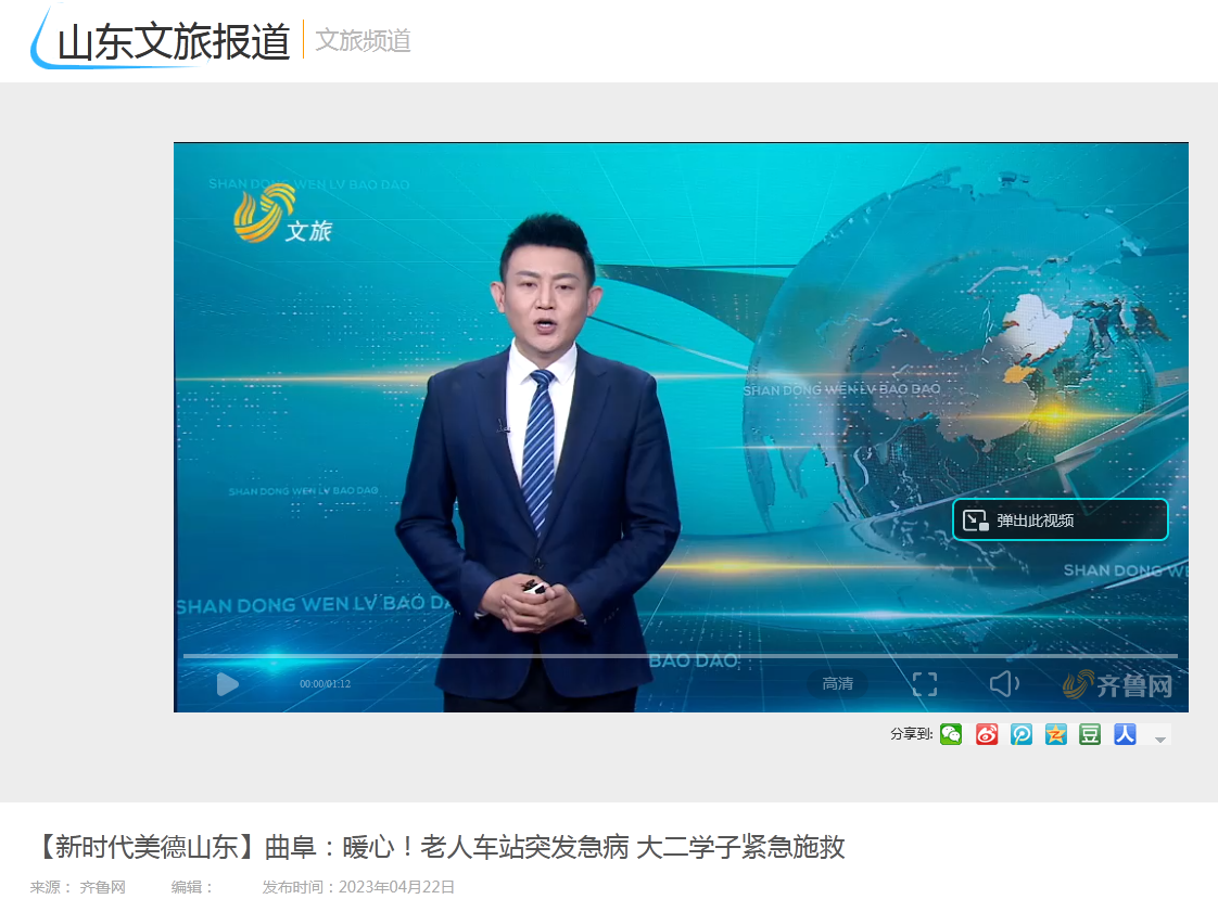 【山东广播电视台】曲阜师大学子紧急施救昏迷老人传递正能量