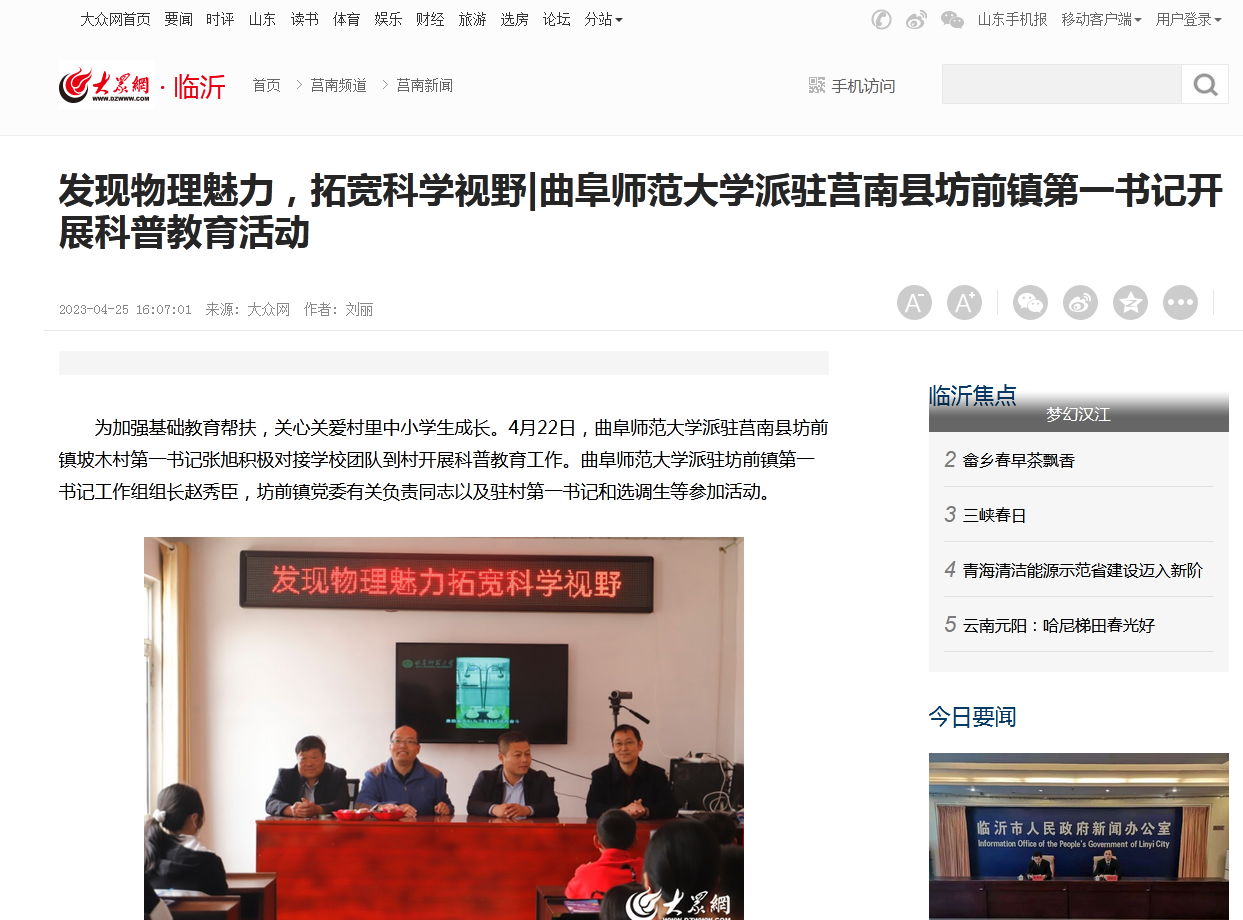 【大众网】华体会官方网页版_华体会(中国)派驻莒南县坊前镇第一书记开展科普教育活动
