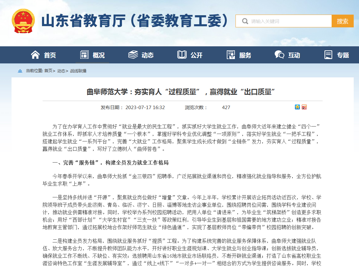 【山东省教育厅·战线联播】华体会官方网页版_华体会(中国):夯实育人“过程质量”,赢得就业“出口质量”