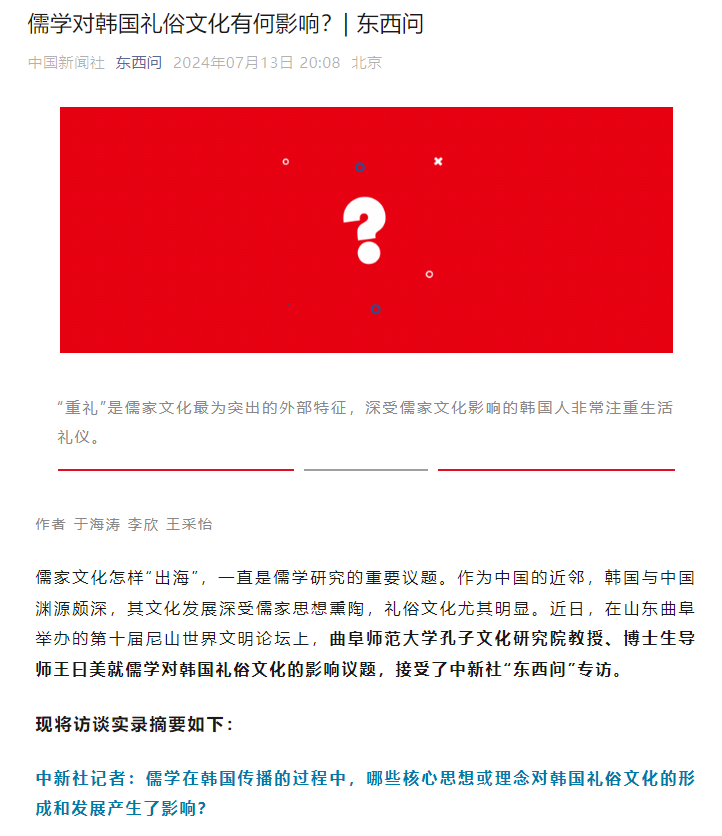 【中国新闻社】华体会官方网页版_华体会(中国)孔子文化研究院教授、博士生导师王曰美接受中新社“东西问”专访