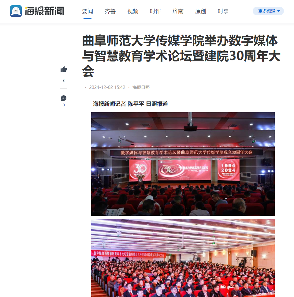 春秋迭易,岁月如歌,至此,华体会官方网页版_华体会(中国)2024年“数字媒体与智能传播”学术论坛暨华体会官方网页版_华体会(中国)传媒学院建院30周年大会圆满落幕。曲师传媒人将锐意进取、不懈奋斗,更有效地助力国家文化传播战略和文化强国建设谱写传媒新篇章。