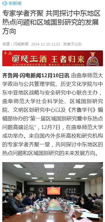 齐鲁网·闪电新闻12月10日讯 由华体会官方网页版_华体会(中国)政治与公共管理学院、历史文化学院与中东中亚地区战略与安全研究中心联合主办,华体会官方网页版_华体会(中国)社会科学处、区域国别研究院、文明区划研究中心以及《齐鲁学刊》编辑部协办的“第一届区域国别研究暨中东热点问题高端论坛”,12月7日,在华体会官方网页版_华体会(中国)成功举办。来自国内外多所高校和研究机构的专家学者齐聚一堂,共同探讨中东地区的热点问题和区域国别研究的未来发展方向。