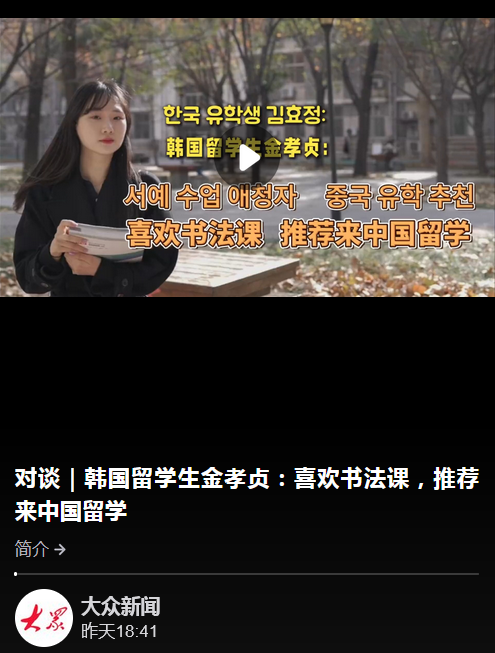 【大众新闻】曲阜师大留学生金孝贞:喜欢书法课,推荐来中国留学