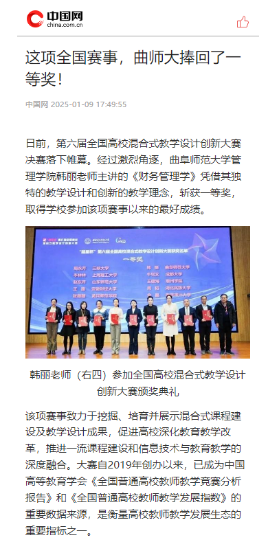 【中国网】这项全国赛事,曲师大捧回了一等奖!
