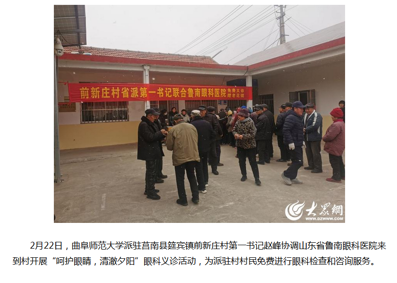 【大众网】曲阜师大派驻莒南县筵宾镇前新庄村第一书记联合鲁南眼科医院开展义诊