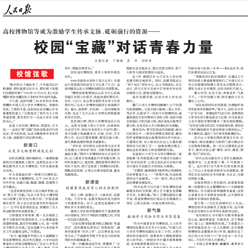 走进大学校园,博物馆、展览馆、艺术馆……这些汇聚“宝藏”的场馆既是时代的见证、学术的积淀,也成为激励青年学生传承文脉、砥砺前行的宝贵资源。