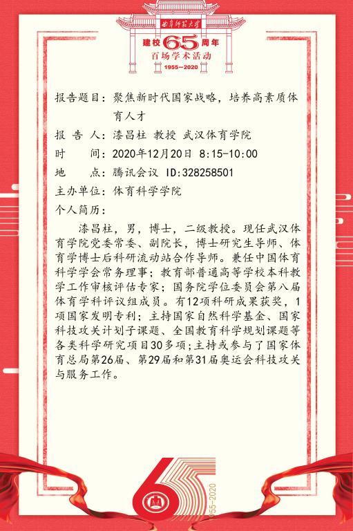 建校65周年校庆百场学术活动-武汉体育学院漆昌柱教授
