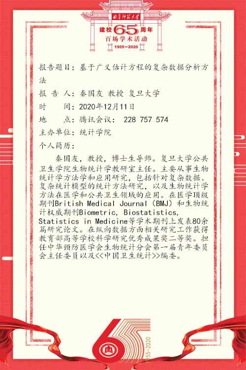 建校65周年校庆百场学术活动-复旦大学秦国友教授