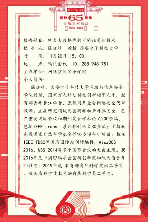 建校65周年百场学术活动-西安电子科技大学陈晓峰教授