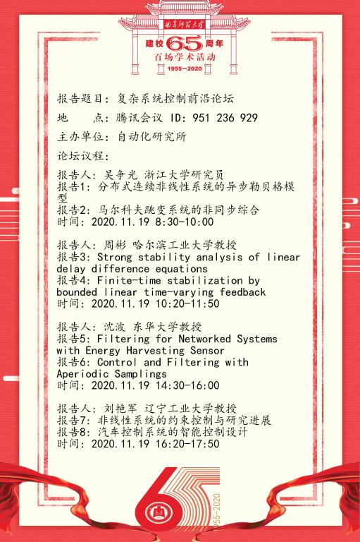 建校65周年百场学术活动-复杂系统控制前沿论坛