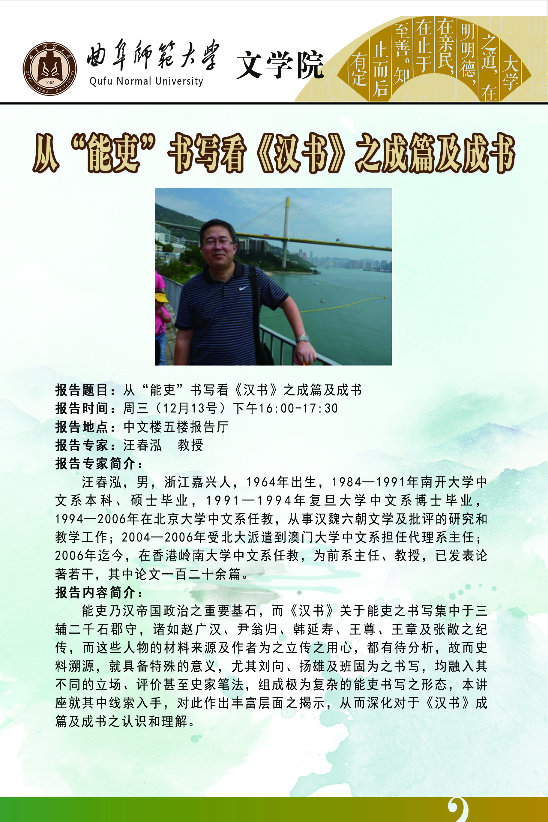 文学院学术报告预告:从“能吏”书写看《汉书》之成篇及成书