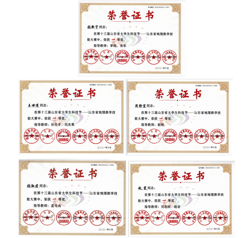 山东省大学生地理教学技能大赛由山东省教育厅、山东省发展和改革委员会等单位联合主办,本次大赛采取各校提交模拟授课视频、评委组线上打分的方式进行。大赛期间,地理与旅游学院领导多次参加听评课等训练活动,指导教师认真负责、细心指导,参赛选手积极备赛、刻苦训练,为本次大赛优异成绩的取得奠定了良好基础。