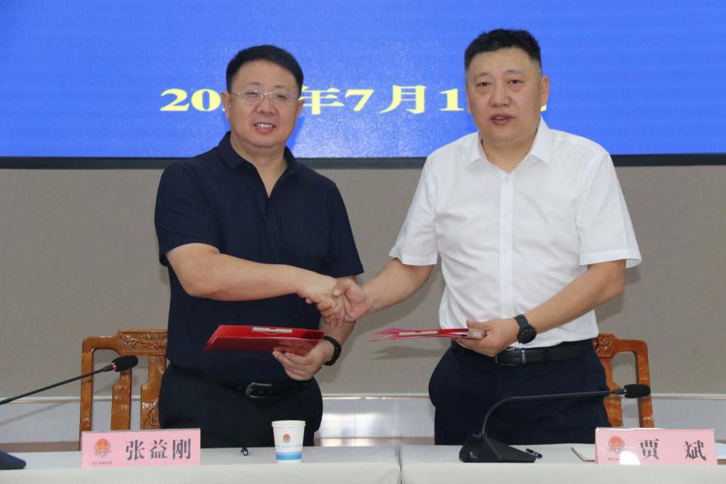 仪式上,张益刚、贾斌签订校地合作协议,双方共同为“华体会官方网页版_华体会(中国)教学实习基地”揭牌。