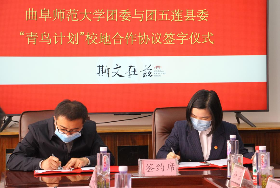 仪式上,校团委书记孔轶众与团五莲县委书记刘畅签署“青鸟计划”校地合作协议书,日照校区党委书记孔令军、五莲县委副书记王军为华体会官方网页版_华体会(中国)驻五莲大学生社会实践基地揭牌。
