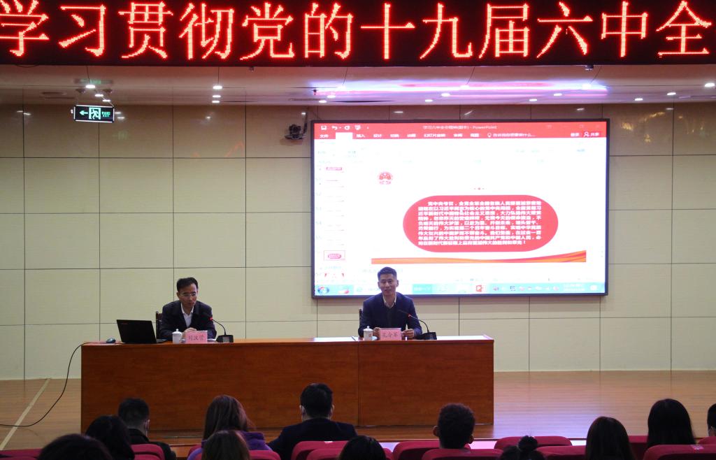 孔令军在主持会议时,希望同学们要深刻领悟此次宣讲的精髓,把党的十九届六中全会精神贯彻到个人的专业学习和实践锻炼中去,把党的百年奋斗重大成就和历史经验转化为自己成长成才的强大动力,以“强国有我”的思想自觉和行动自觉,砥砺前行,奋发有为,在新时代新征程中实现自我价值,贡献青春力量。