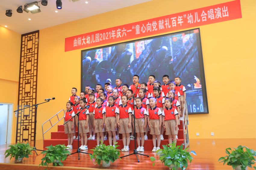曲阜师大新闻中心讯(记者:孙琪)为庆祝建党100周年,激发孩子们的爱国精神,展现积极向上的精神风貌。6月1日上午,曲阜师大幼儿园举行了“童心向党 献礼百年”合唱演出活动,孩子们用优美的歌声表达了对党和国家的热爱之情,用别样的方式庆祝“六一”国际儿童节。学校副校长李兆祥,学校办公室、校工会、后勤管理处等相关负责人和师生们一起观看了演出。