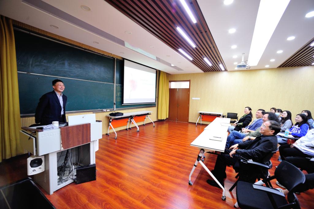林在勇教授的报告以《艺术的诗词境界:追寻诗意与哲理的硬核》为题,以自己的诗词作品和策划出品的原创音乐剧《春上海1949》、《梦临汤显祖》、歌剧《汤显祖》、《贺绿汀》、交响乐《丝路追梦》、《炎黄颂》等为例,结合自己的创作历程,生动论述了艺术的感事同情、通感共情、情景代入等创作心得,深刻阐述了艺术创作来源于生活、与时代同步、为人民代言的辩证关系,给师生带来了一堂融艺术创作鉴赏与思想政治教育为一体的精彩报告。院长肖桂彬教授主持了报告会。