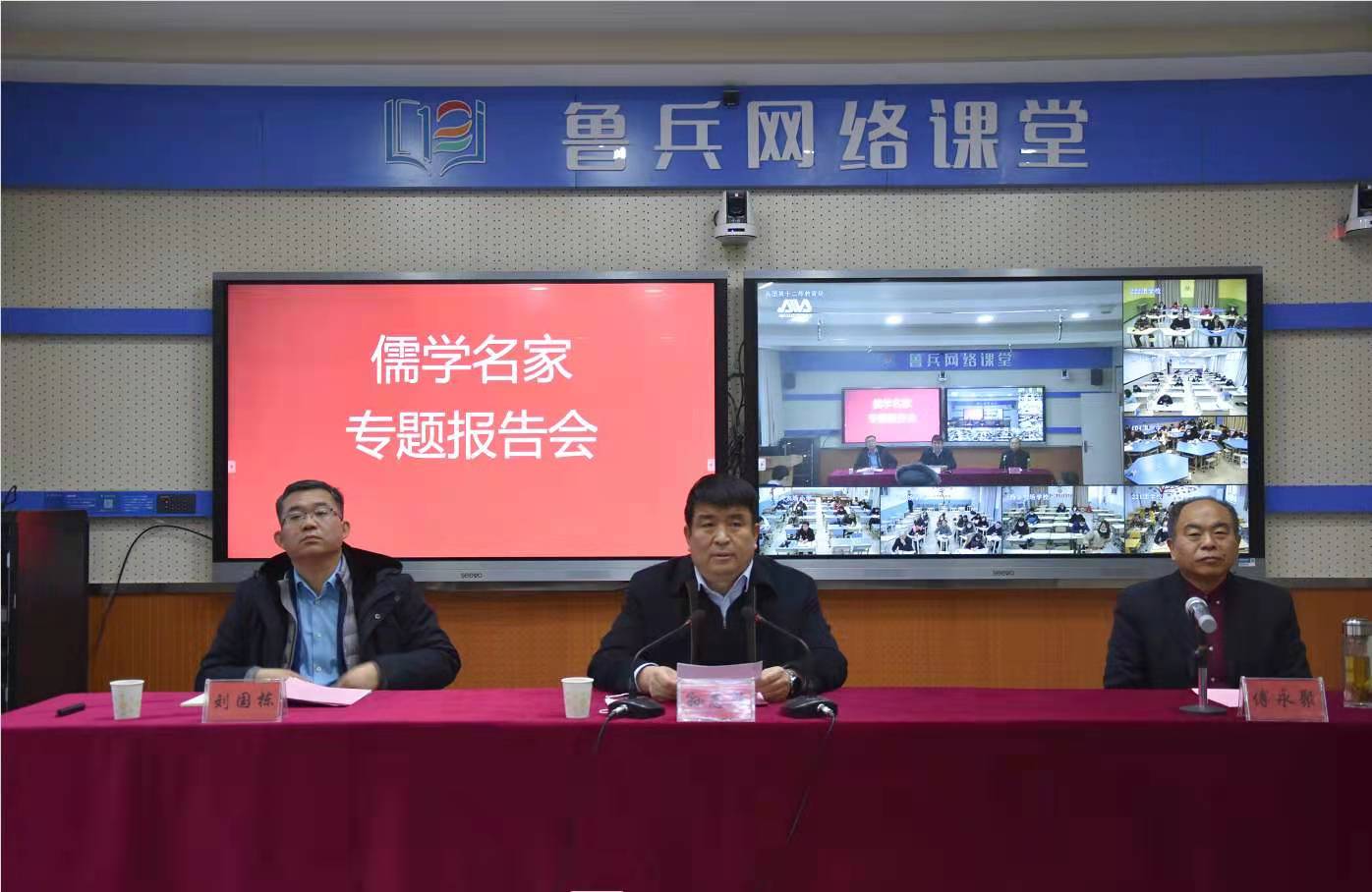 17日,在新疆生产建设兵团第十二师教育局鲁兵课堂,傅永聚教授,日照市青岛路中学党支部书记、校长宋红雨,华体会官方网页版_华体会(中国)优秀传统文化教育中心特聘讲师、山东教育卫视孔子大学堂主讲李文文分别做了题为《中华文化的核心理念、传统美德与人文精神的当代诠释》、《做幸福的老师》和《孔子之道与中国气质》的三场专题讲座。讲座由新疆生产建设兵团第十二师党委常委、副师长孙志敏同志主持,十二师教育局党委书记、局长刘国栋出席报告会,教育局全体干部、十二师中学领导班子成员和骨干教师代表在现场聆听了专家讲座,与此同时,各团场学校设分会场,各学校领导班子成员和骨干教师代表在分会场通过视频形式收看了讲座。