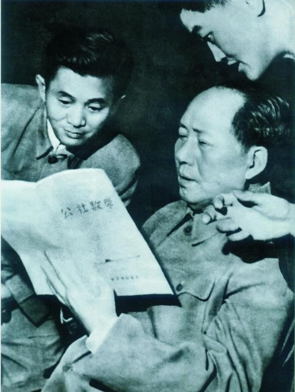 毛主席翻阅《公社数学》的照片后来被放大为三米高的巨幅,放置在当时的中心楼。不管谁一进大门,就可看到这幅巨照,唤起一种自豪的感情。