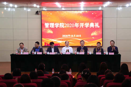 曲阜师大新闻中心讯   日前,管理学院举行2020年开学典礼,学院党委书记刘进、院长王宜举、党委副书记赵杰、副院长刘金发、运筹学研究所所长柏庆国、物流研究所所长李学工教授、物流管理系主任张应语教授、学院全体政工干部和教师代表、学院2020级全体新生及第十九届团委学生会参加典礼。典礼由学院党委副书记赵杰主持。