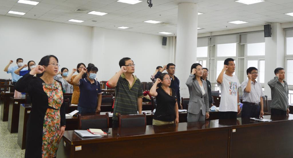 6月29日下午,图书馆日照教工党支部召开了全体党员会议。会议由党支部组织委员王标主持,全体党员参加会议。会议按照《济宁市党支部标准化规范化建设指导意见》《华体会官方网页版_华体会(中国)党支部评星定级管理办法》,开展了党支部委员会增补委员选举工作。经过充分酝酿讨论,采取无记名投票和差额选举的方法,王丽娟同志当选为党支部委员会委员。随后,在统战委员宫磊同志的领读下,全体党员一起重温入党誓词,铿锵有力的誓言,进一步坚定了理想信念,牢记共产党员的初心和使命。