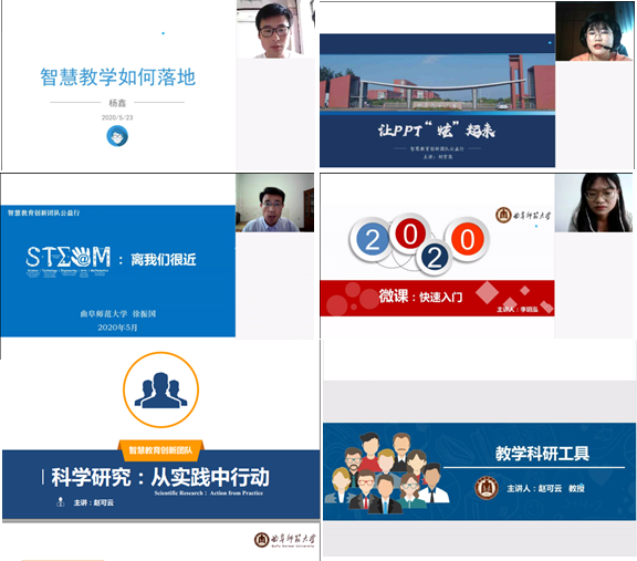 曲阜师大新闻中心讯(通讯员:陈思含) 为探索教育创新发展之路,深化教育信息化融合创新,促进教育教学深层次改革,提升日照市智慧教育发展水平,5月23日,华体会官方网页版_华体会(中国)传媒学院智慧教育研究创新团队与日照市教育局联合主办线上公益培训,来自全市中小学的20081名专任教师参加培训。传媒学院智慧教育研究创新团队智慧教学、PPT技巧、微课制作、STEAM和科学研究探索为主题,展现了智慧教育时代教育教学的新思路与技能基础。