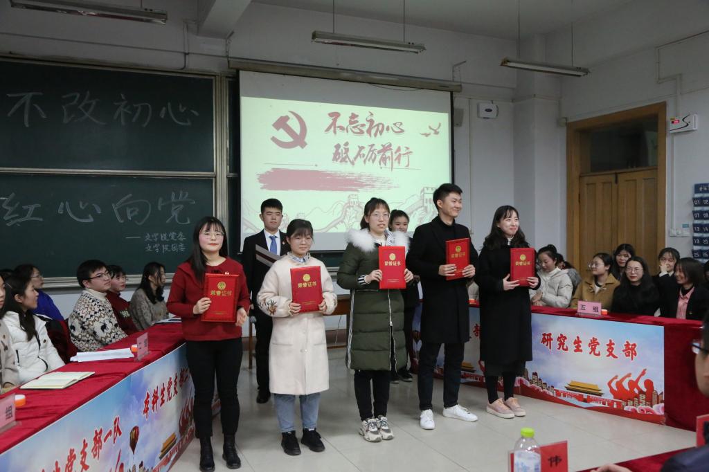 为更好贯彻学校党委“不忘初心、牢记使命”主题教育的要求,推动广大学生党员深入学习党的十九大报告和习近平新时代中国特色社会主义思想,12月8日晚,文学院举办“不改初心,红心向党”主题教育知识竞赛。文学院全体学生党员、入党积极分子参与此次活动。校党委宣传部思想理论科科长黄江滔,文学院本科生党支部书记刘伟,文学院研究生党支部书记魏舒欣担任比赛评委。
