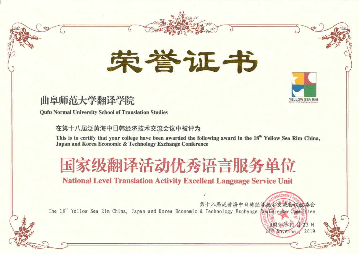 日前,第18届泛黄海中日韩经济技术交流会议正式拉开帷幕。会议由中国商务部、日本经济产业省九州经济产业局、韩国产业通商资源部主办,商务部亚洲司、山东省商务厅、济宁市政府等承办,以“深化地区合作,拓展新的交流模式,加强中日韩产业园建设,促进泛黄海地区协同发展”为主题。我校翻译学院由30人组成的日韩语言志愿者服务团队,在日语系高远老师、韩语系周磊老师的带队下,开始了为期三天的志愿者服务。在本次活动中,三十名志愿者都荣获“优秀志愿者”称号,我校翻译学院获得“国家级翻译活动优秀语言服务单位”荣誉称号。