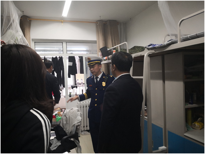 检查组一行先后来到学生公寓、图书馆等地,详细了解消防设备的使用和维护,仔细检查安全疏散通道、安全出口是否畅通,消防设施、灭火器材配备是否齐全有效,消防安全疏散指示标志是否完好,用火用电安全措施是否落实到位,消防安全制度是否建立健全,以及消防宣传教育是否开展到位等情况。