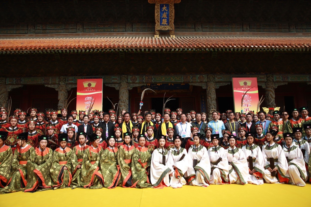 2019年9月28日是我国古代伟大的思想家、教育家、儒家学派创始人孔子诞辰2570周年纪念日。祭孔大典是华夏民族为了尊崇与怀念至圣先师孔子,而举行的隆重祀典。9月28日上午,我校体育科学学院106名学生在大成殿前圆满完成了祭孔大典演出任务,得到了中共济宁市委的高度赞赏。