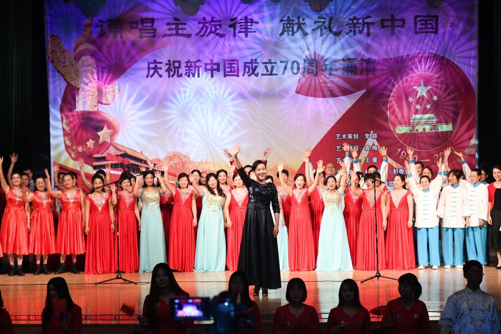 为庆祝新中国成立70周年,赞美伟大祖国的辉煌岁月,抒发曲园教职工的爱国情怀,9月21日,由学校工会主办、教职工诵读协会承办的庆祝新中国成立七十周年——“诵唱主旋律,献礼新中国”诵演晚会在逸夫学术中心成功举行。