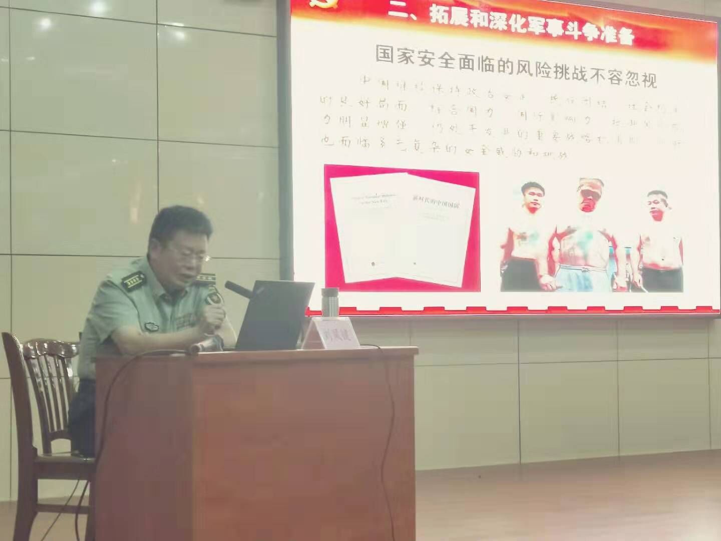 9月2日下午,国防科技大学文理学院军队政治工作系刘凤健教授为我校师生作了题为《新时代国防与军队建设》的报告。