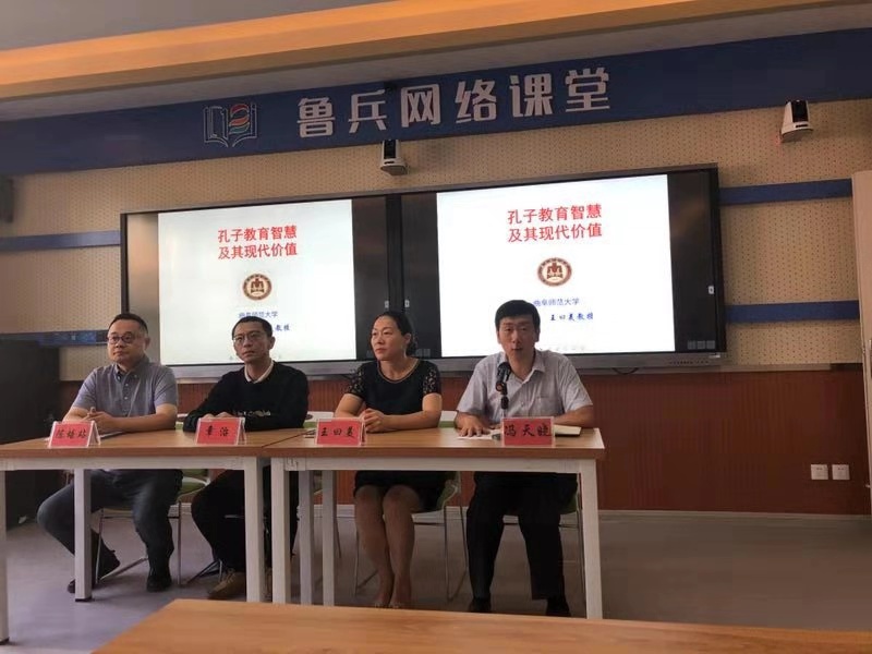 8月20日至26日,为响应第七次全国对口支援新疆工作会议的号召,我校孔子文化研究院博士生导师王曰美教授、音乐学院硕士生导师章治副教授、书法学院硕士生导师陈培站副教授来到新疆乌鲁木齐山东省对口支援兵团十二师教育高质量发展中心,通过“鲁兵网络课堂”,给新疆生产建设兵团的老师们送去了中国优秀传统文化大餐。活动由新疆生产建设兵团十二师教育局冯天晓副局长主持。