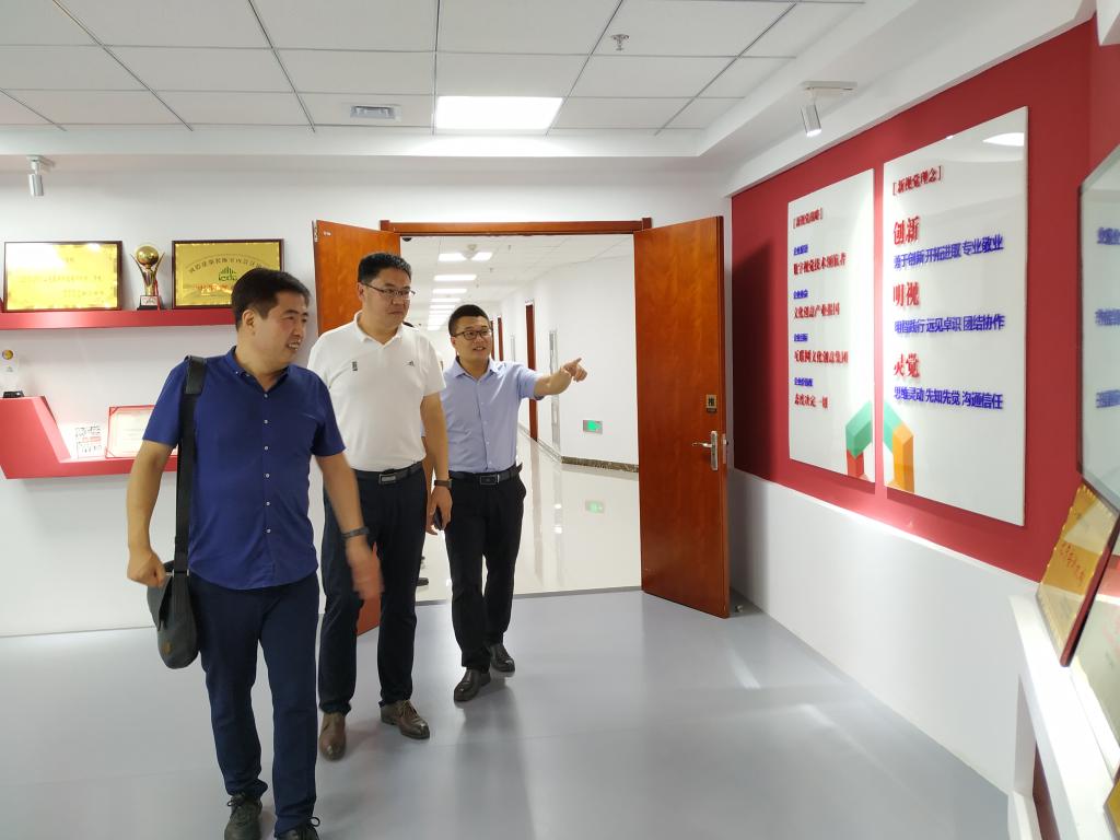王宏杰分别从师资、教室、食堂、学生公寓等方面对山东新视觉数码科技有限公司实训基地建设情况进行了实地调研,并就广告(新媒体广告方向)专业学生的培养目标、课程设置等方面与企业管理人员和教师进行了深入交流。在实地调研后,王宏杰对山东新视觉数码科技有限公司在学生实训基地建设方面的实力表示肯定,希望双方就该专业学生培养开展进一步合作。
