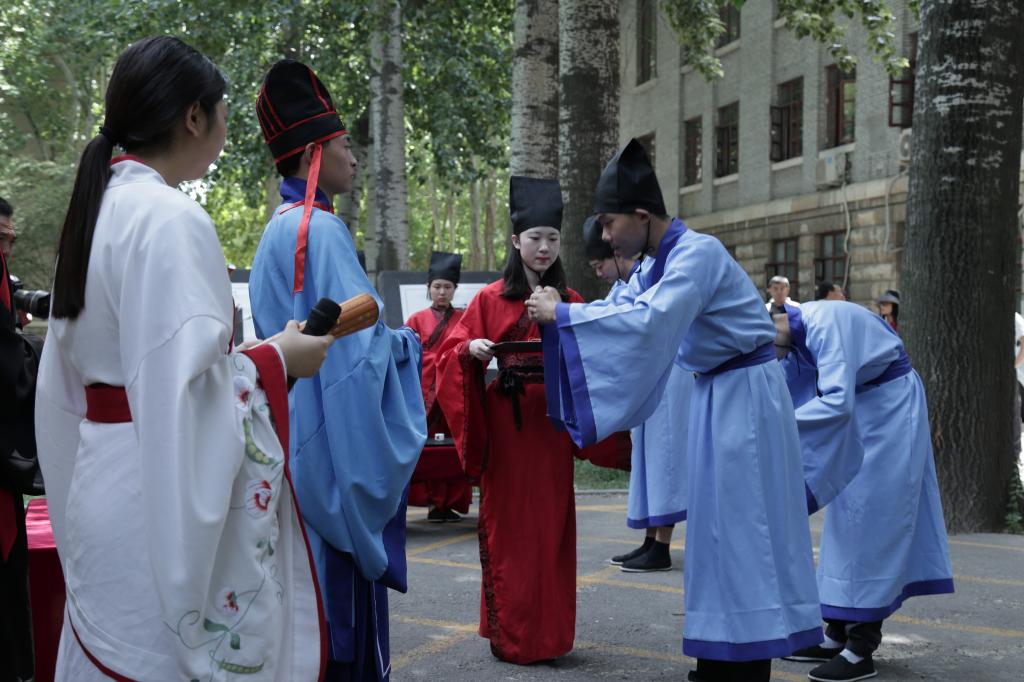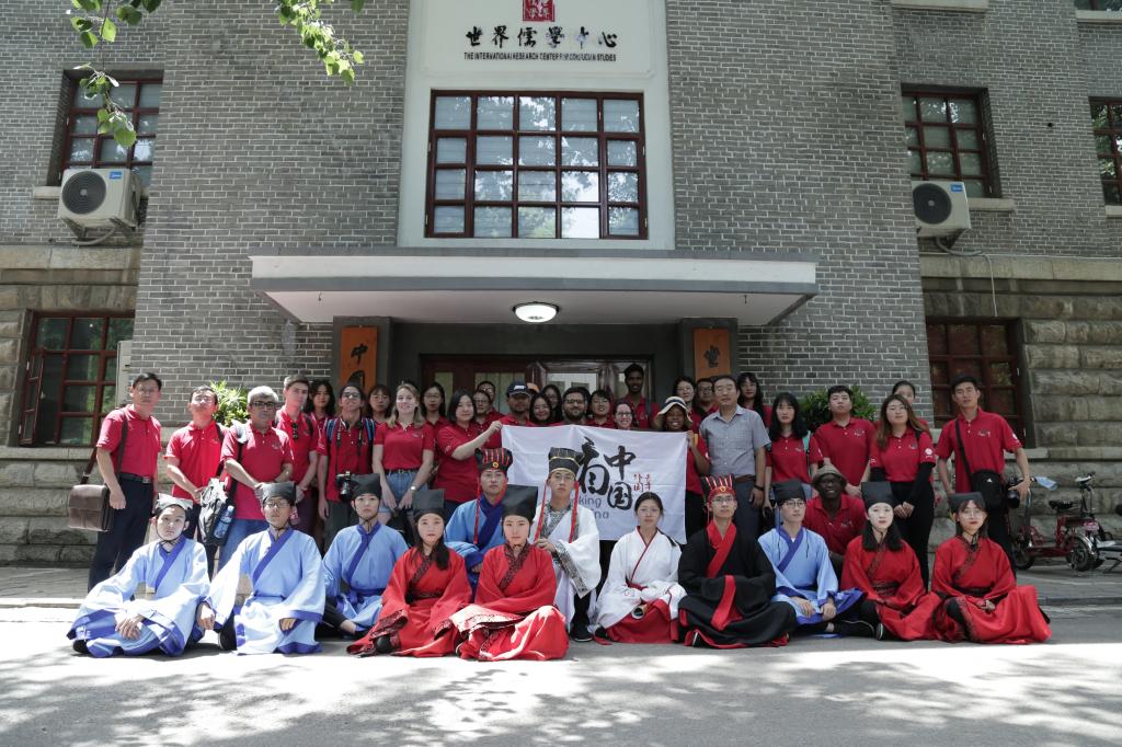 6月4日,“看中国•外国青年影像计划•山东行”活动中外双方指导教师、外国青年导演和志愿者来我校开展儒家文化体验活动。