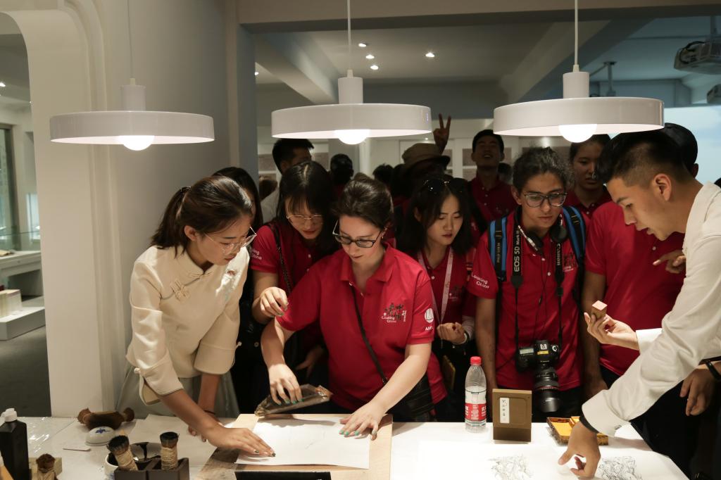 来校期间,参加活动的外国青年观看了由我校体育科学学院、历史文化学院的同学们为大家表演的射艺、束修礼;参观了中国教师博物馆,了解了我国尊师重教的文化传统,并在馆内体验了活字印刷。