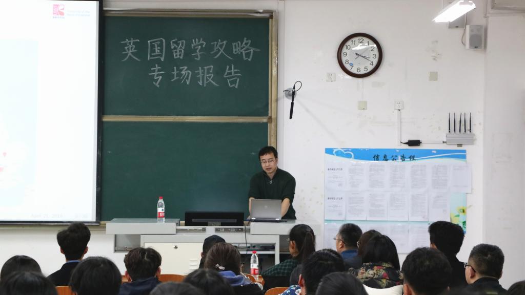 讲座中,西英格兰大学计算机科学和创新技术系的高级讲师李善仓博士从英国留学的基本路线、英国的教育体系、学校选择以及学费、雅思成绩、学科竞赛等方面向同学们进行了详细介绍。