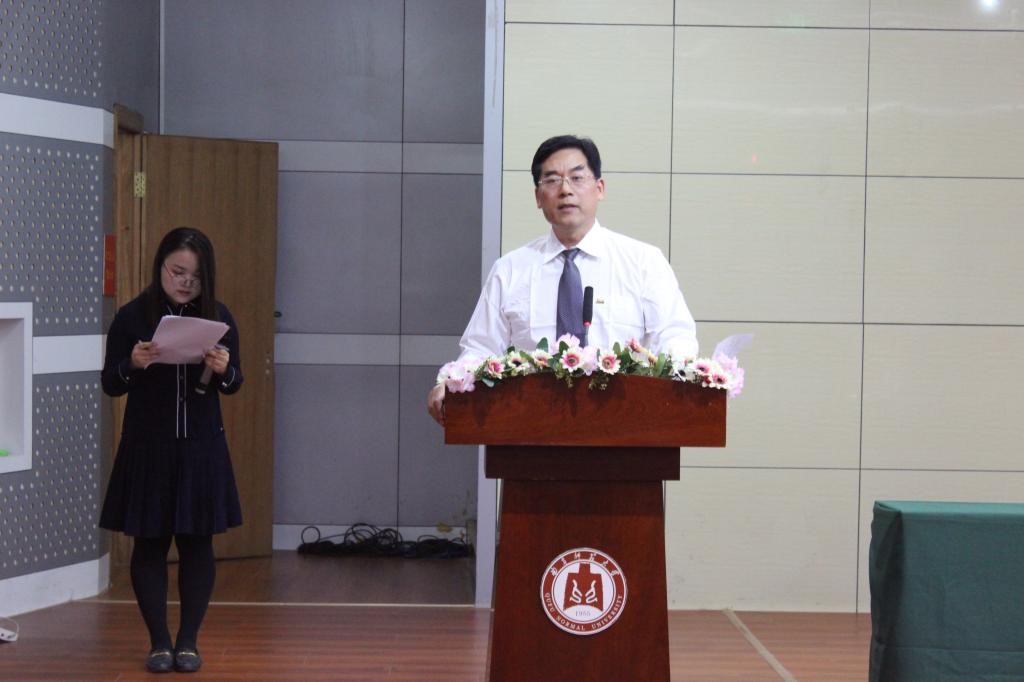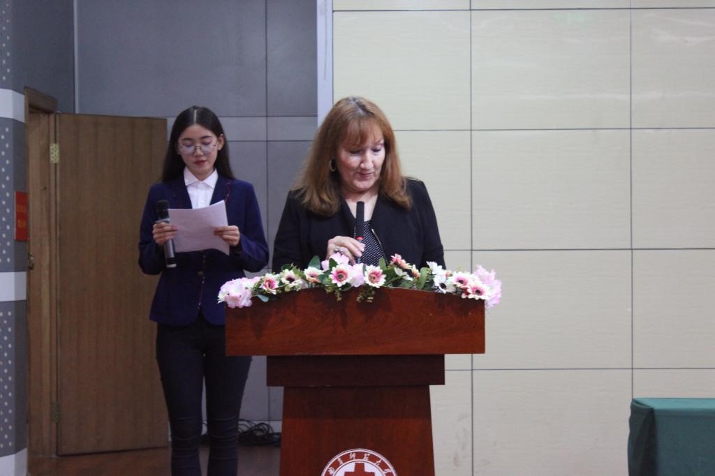 外籍教师代表帕麦拉女士,与大家分享了学习语言的经验以及人生规划,让师生受益匪浅;徐凤老师以小见大,以诙谐幽默的语言向大家描述了丰富多彩的大学生活,表达了对全体学生过好大学生活的美好期许。