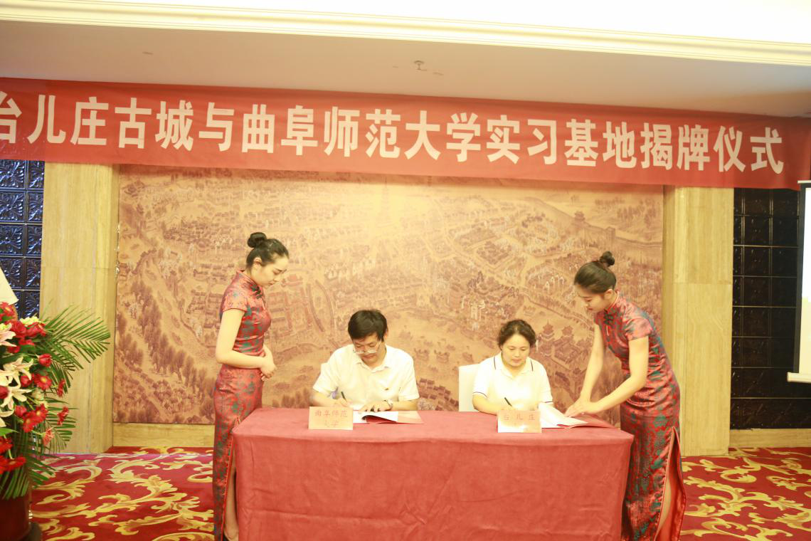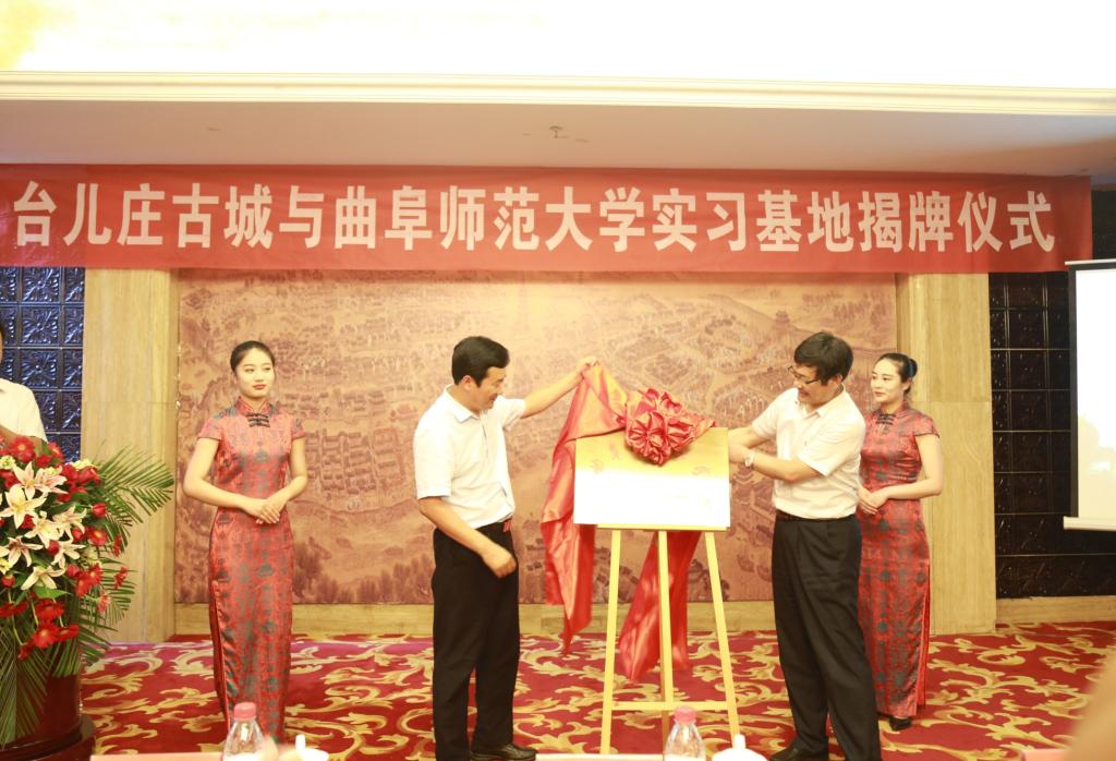6月30日下午,我校与台儿庄古城举行综合教学实习基地签约暨揭牌仪式。山东台儿庄古城集团有限公司董事长曹恒超、副总经理马莉、纪委书记孔维征,我校地理与旅游学院党委书记胡长春、院长兼MTA教育中心主任张全景、党委副书记刘伟、副院长兼MTA教育中心副主任吴军出席仪式。部分MTA导师和研究生、相关专业教师和学生参加了仪式。