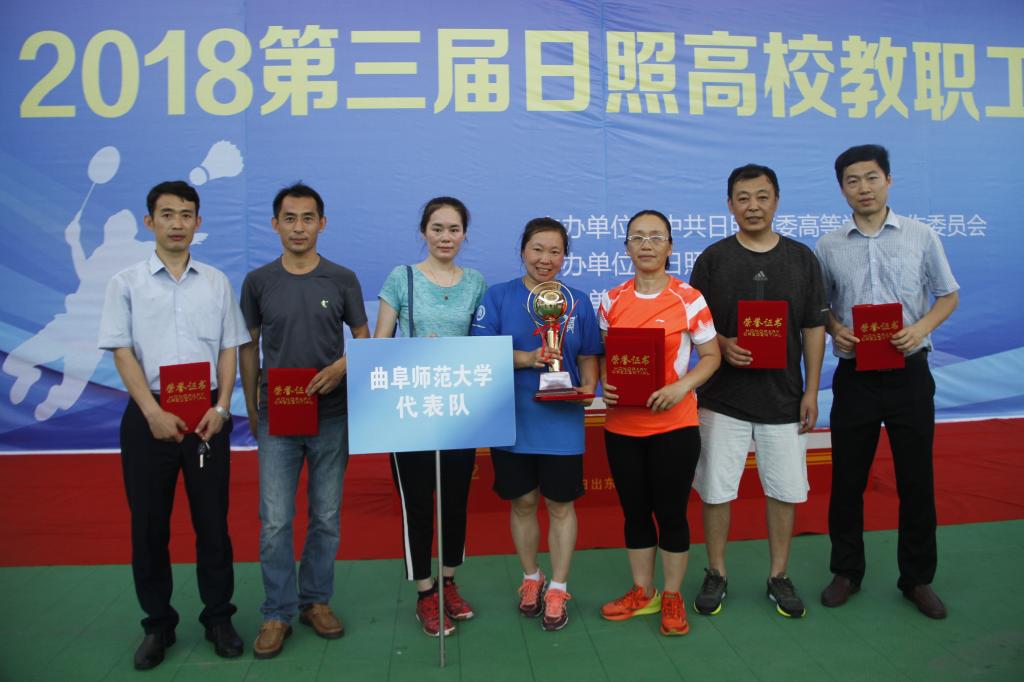本次比赛由中共日照市委高等学校工作委员会主办,日照市高校体育协会协办,日照市日出东方羽毛球俱乐部承办的传统赛事,共有6所高校近百名教职工参加了比赛。比赛分为团体项目和五个单项,其中,团体项目为五羽轮比追逐赛,经过四场对战,充分发挥五人团队、混合搭配、战略追逐的优势,我校取得了第一名。另外,本次比赛设五个单项,我校取得了混合双打前两名,40岁以上男子单打、女子单打第一名、40岁以下女单第一名的好成绩。