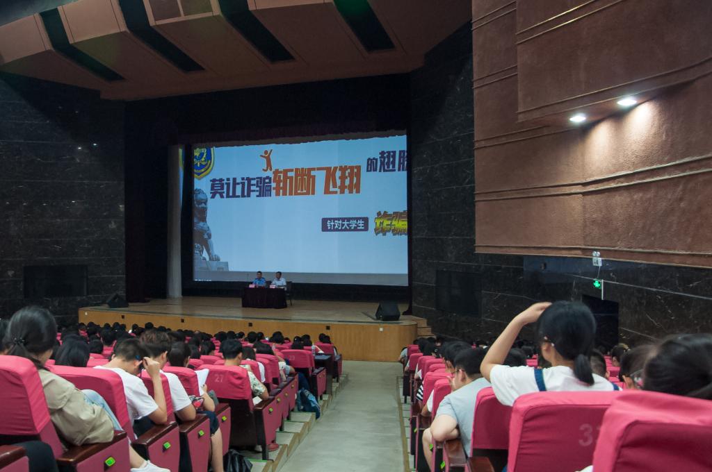 讲座上,学校保卫处负责人提醒师生们当前电信网络诈骗频发,希望大家在生活中进一步提高警惕,认清诈骗的方式和手段,切实确保人身和财物安全,携手共建平安校园。