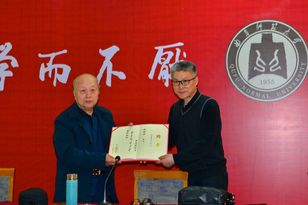 为迎接世界读书日的到来,增强师生人文素养,进一步提升师生语言艺术水平,4月17日下午,国家话剧院国家一级演员、著名导演、享受国务院特殊津贴的朗诵界泰斗张家声先生应邀来我校,作了题为《有声语言艺术的创作规律和技巧》的学术报告。我校师生代表、曲阜市朗诵协会会员近300人参加了本次报告会。文学院副院长李钧教授在会上向张家声先生颁发了兼职教授聘书。报告会由文学院袁梅老师主持。