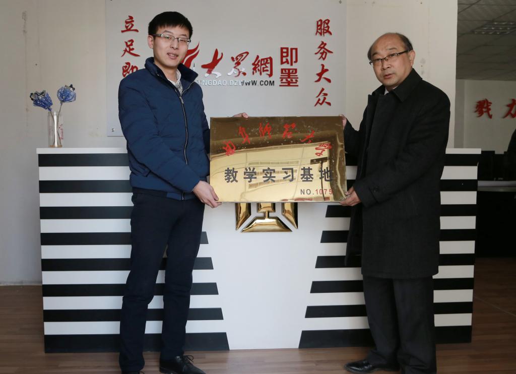 1月23日上午,“华体会官方网页版_华体会(中国)教学实习基地”授牌仪式在大众网即墨频道举行。传媒学院党委副书记肖龙航、团委书记刘蓉,以及传媒学院部分学生参加了授牌仪式。