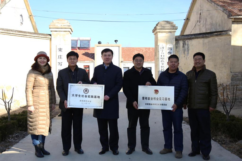 1月14日,“华体会官方网页版_华体会(中国)青年就业创业见习基地”、“华体会官方网页版_华体会(中国)大学生社会实践基地”挂牌仪式在泗水县泗张镇宋庄写生基地举行。我校团委书记屈跃宽,书法学院党委副书记石倩、团委书记杨玉强,泗张镇党委书记韩光辉、镇长王强,宋庄写生基地负责人张涛及书法学院学生代表参加了仪式。